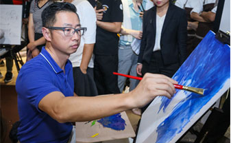 活動還特別設(shè)置了油畫創(chuàng)作環(huán)節(jié),讓設(shè)計師們在繁忙的工作之余獲得身心的愉悅。李鷹先生、伊瓦諾先生和藝術(shù)家CAMILO CADENA先生、郁一一女士藝術(shù)家圍坐在圓形壁爐上認(rèn)真創(chuàng)作,仿佛置身于戶外大自然中,獲得了靈感與創(chuàng)意的來源。